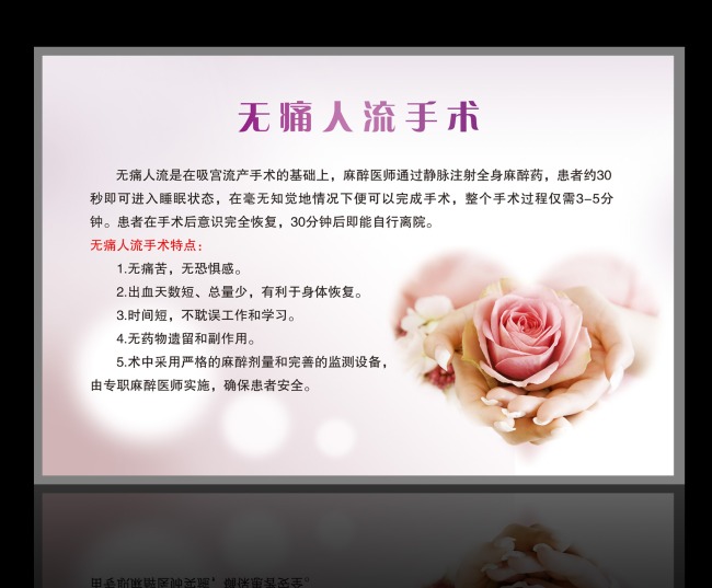 人工流产手术材料也会影响到手术的安全性。"薇薇保宫无痛人流术"要求手术采用的材料,必须是一次性的吸引管,并且是用进口医用高分子材料制作的微管,管体柔软,对宫腔损伤非常小。